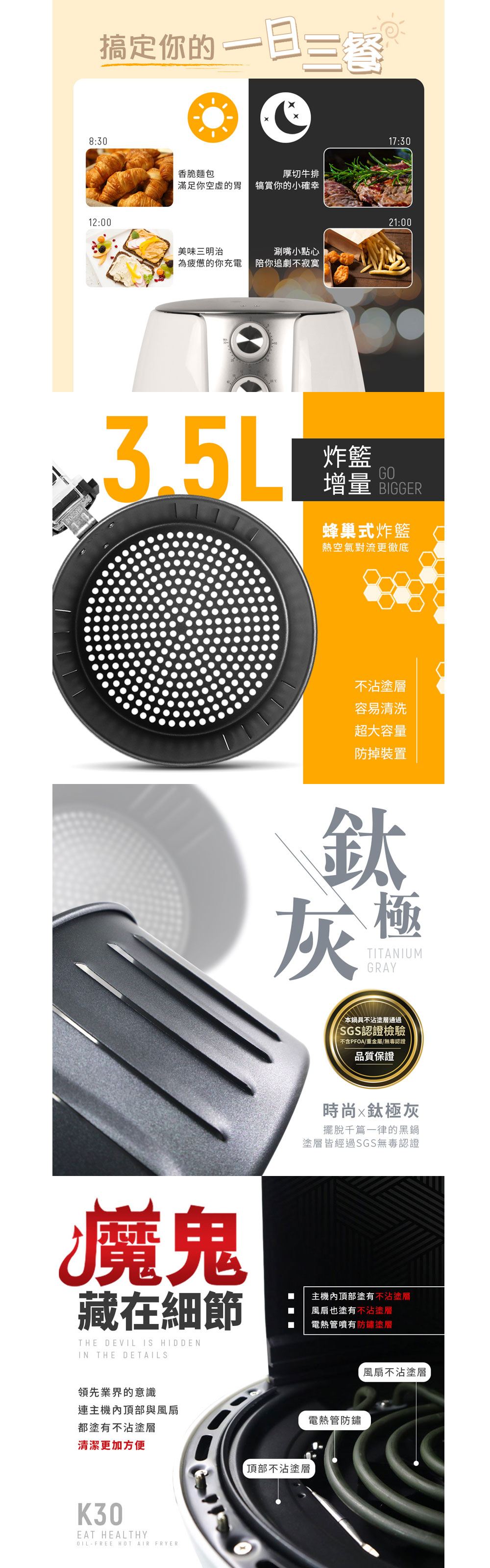 保固:主機原廠原廠三年保固(馬達/電熱管/風扇/溫控/時間調整器),消耗品除外(ex:外鍋/炸籃/贈品)